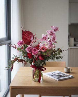 Whether you are looking to brighten up your home, office or special event, our premium flower arrangement featuring cymbidium orchids is the perfect choice. The fresh blooms used in this arrangement are carefully selected to complement the natural beauty of the cymbidium orchids.