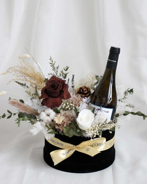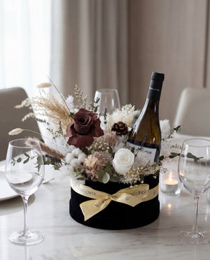 搭配清爽的白葡萄酒,是一束精美的花束,由持久保鲜的干花、仿真花和人造花组成。这是以优雅的方式开启任何庆祝活动的绝佳选择。