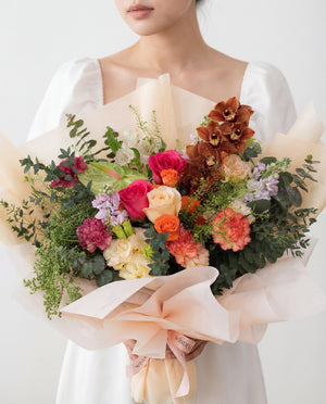 无论您是想为家居、办公室还是特殊活动增添光彩,我们这款以蕙兰为主的高级花束都是您的理想之选。花束中所用的鲜花均经过精心挑选,旨在衬托蕙兰的自然之美。想要给人留下深刻印象?那就选择其中任何一个版本吧!它繁花似锦,美不胜收,一定会让你的爱人惊艳不已!